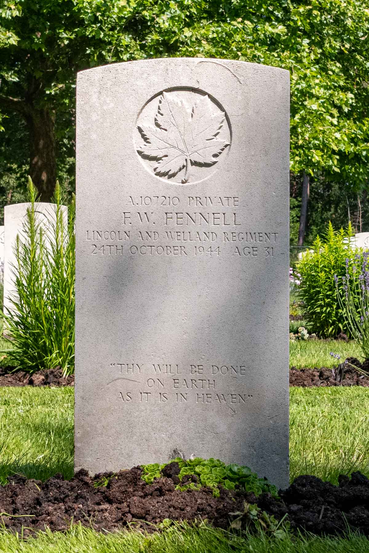 Date de décès (jj-mm-aaaa): 24-10-1944Âge au décès: 31 ansDernier cimetière: Canadian War CemeteryNuméro de tombe (plot, file, tombe): 02 B 10Rang: PrivateNuméro de service: A/107210