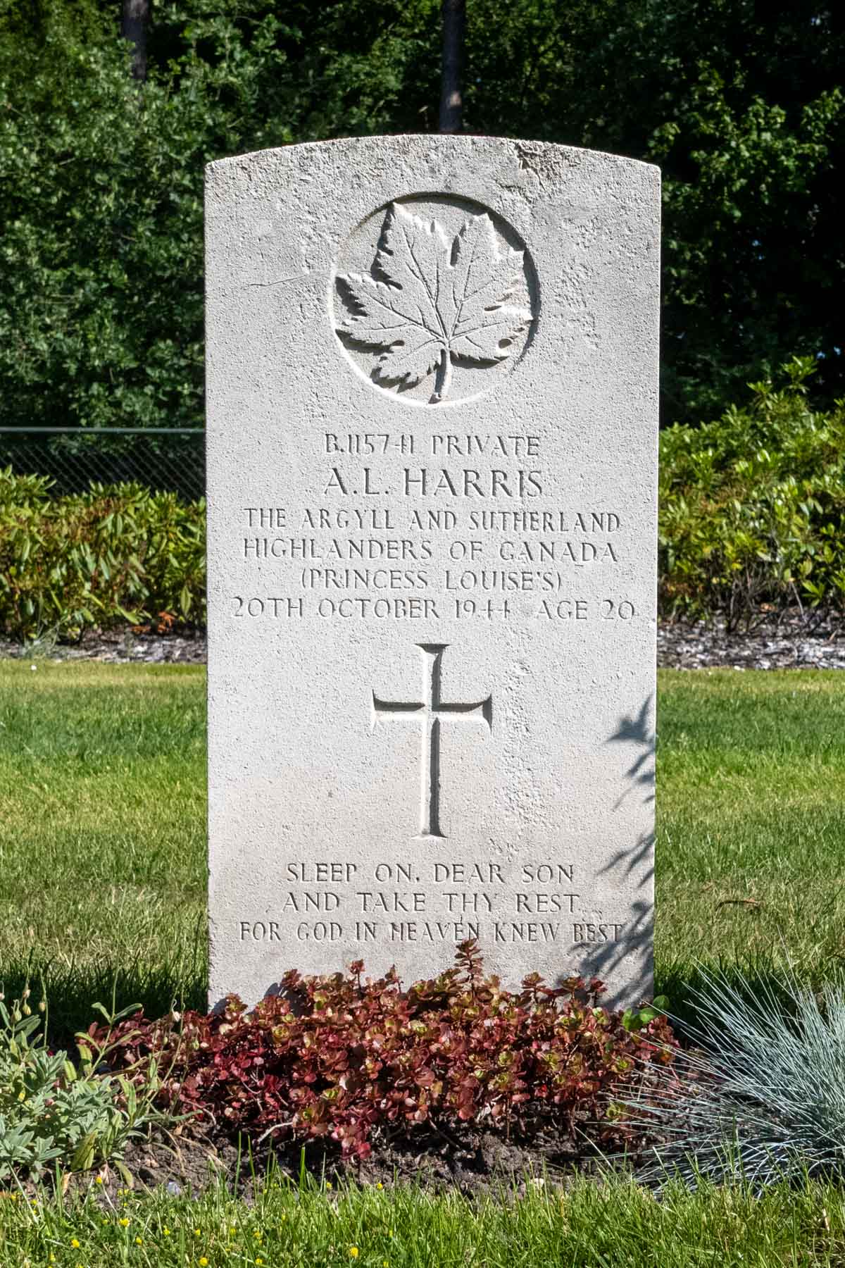 Date de naissance (jj-mm-aaaa): 31-03-1925Parents: Samuell Albert Harris et Mary Ettabell HarrisDate de décès (jj-mm-aaaa): 20-10-1944Âge au décès: 20 ansRaison du décès: Tué au combatDernier cimetière: Canadian War CemeteryNuméro de tombe (plot, file, tombe): 10 G 05Rang: PrivateNuméro de service: B/115741