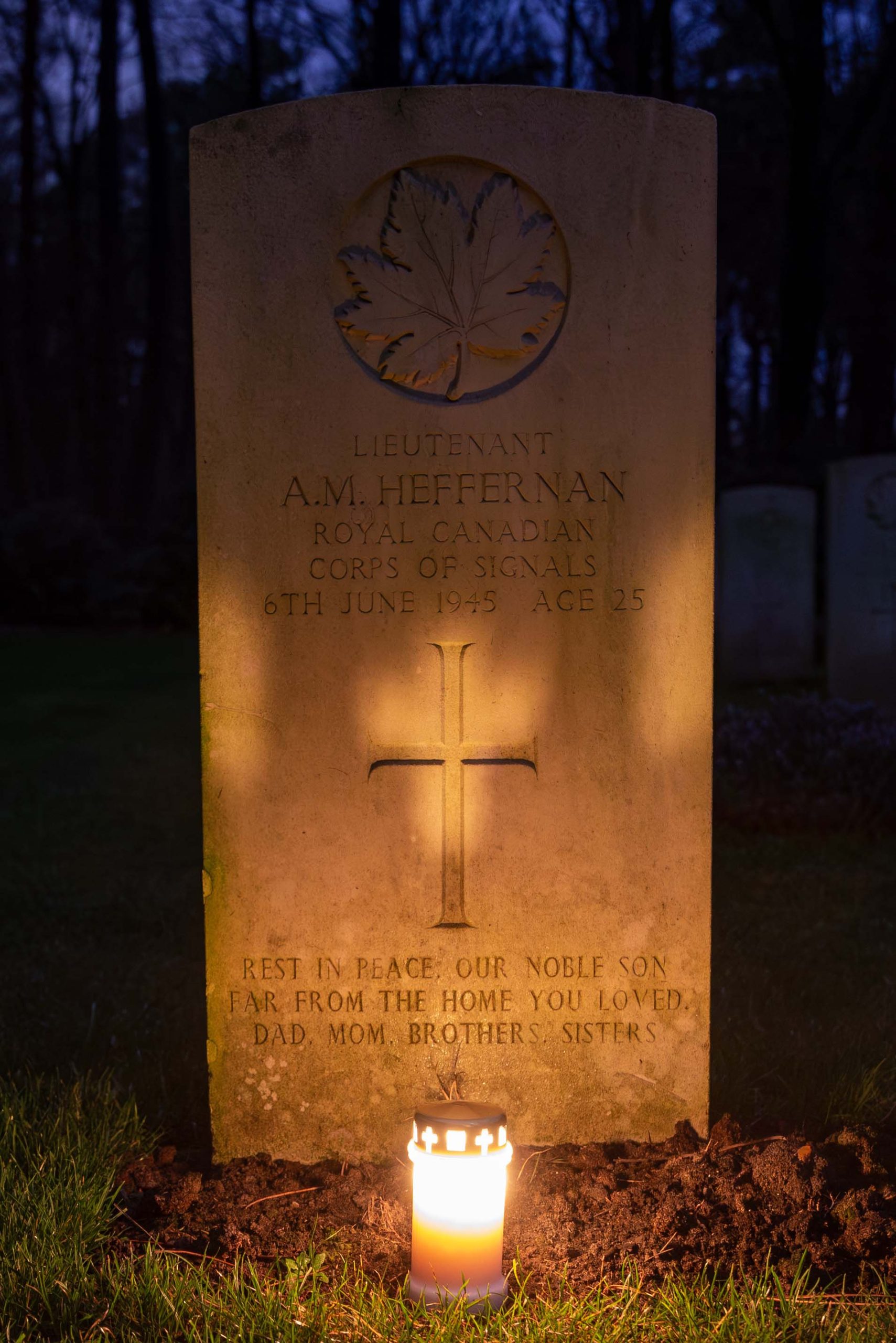 Date de décès (jj-mm-aaaa): 06-06-1945Âge au décès: 25 ansDernier cimetière: Canadian War CemeteryNuméro de tombe (plot, file, tombe): 07 B 01Rang: Lieutenant