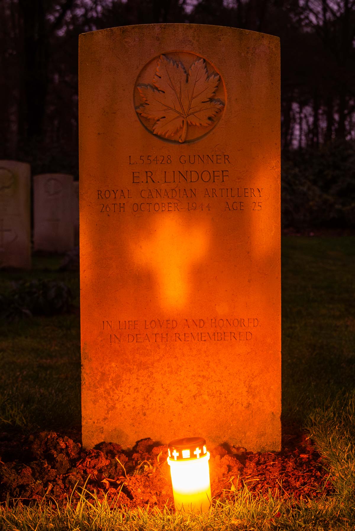 Date de décès (jj-mm-aaaa): 26-10-1944Âge au décès: 25 ansDernier cimetière: Canadian War CemeteryNuméro de tombe (plot, file, tombe): 07 C 12Rang: GunnerNuméro de service: L/55428