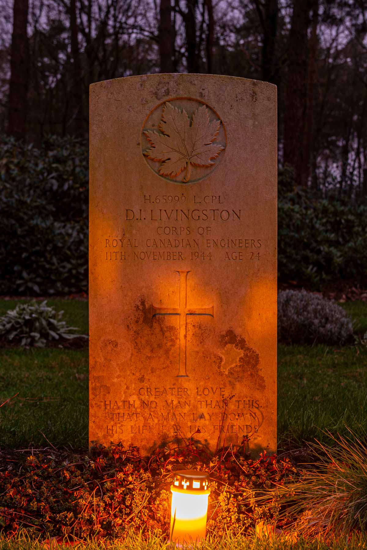 Date de décès (jj-mm-aaaa): 11-11-1944Âge au décès: 24 ansDernier cimetière: Canadian War CemeteryNuméro de tombe (plot, file, tombe): 07 F 03Rang: Lance CorporalNuméro de service: H/65999