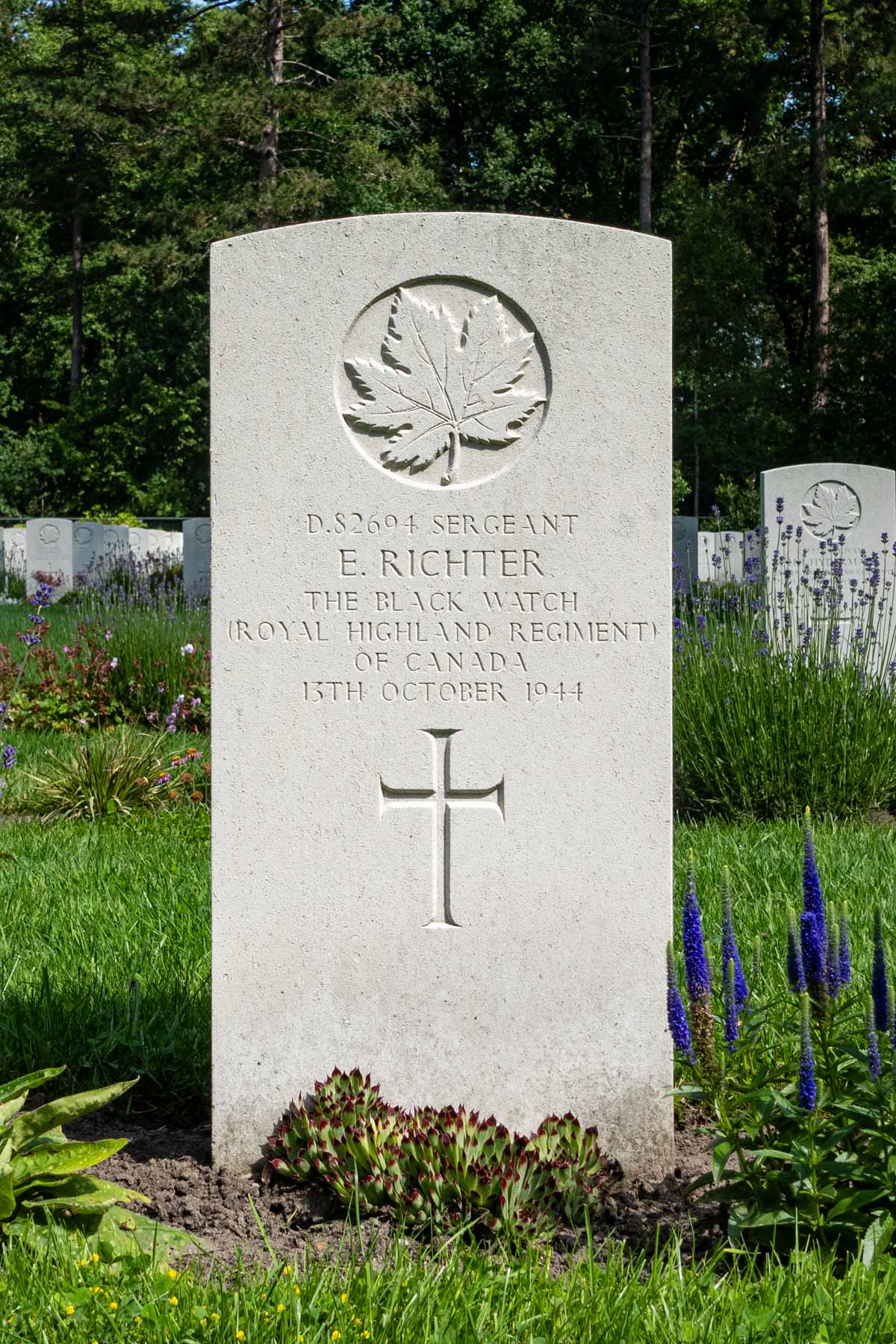 Épouse: Mary Olive DixonParents: Frank et Dorothy RichterDate de décès (jj-mm-aaaa): 13-10-1944Âge au décès: 24 ansRaison du décès: Décédé des suites de ses blessures.Lieu présumé du décès: Hôpital de campagne de PutteCimetière temporaire: À l'ouest de Putte, au nord-est du château de Ravenhof.Dernier cimetière: Canadian War CemeteryNuméro de tombe (plot, file, tombe): 04 E 10Rang: SergeantNuméro de service: D/82694Pays desservi: Canada