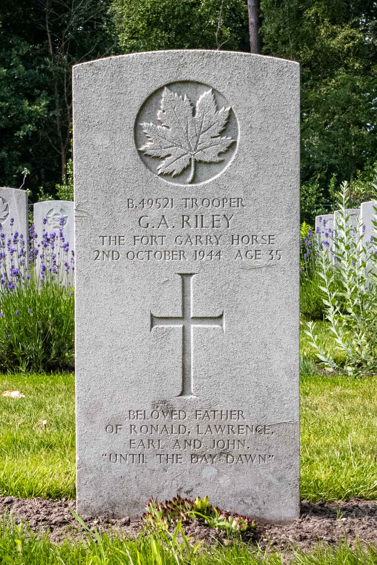 Date de décès (jj-mm-aaaa): 02-10-1944Âge au décès: 35 ansDernier cimetière: Canadian War CemeteryNuméro de tombe (plot, file, tombe): 11 C 02Rang: TrooperNuméro de service: B/49521