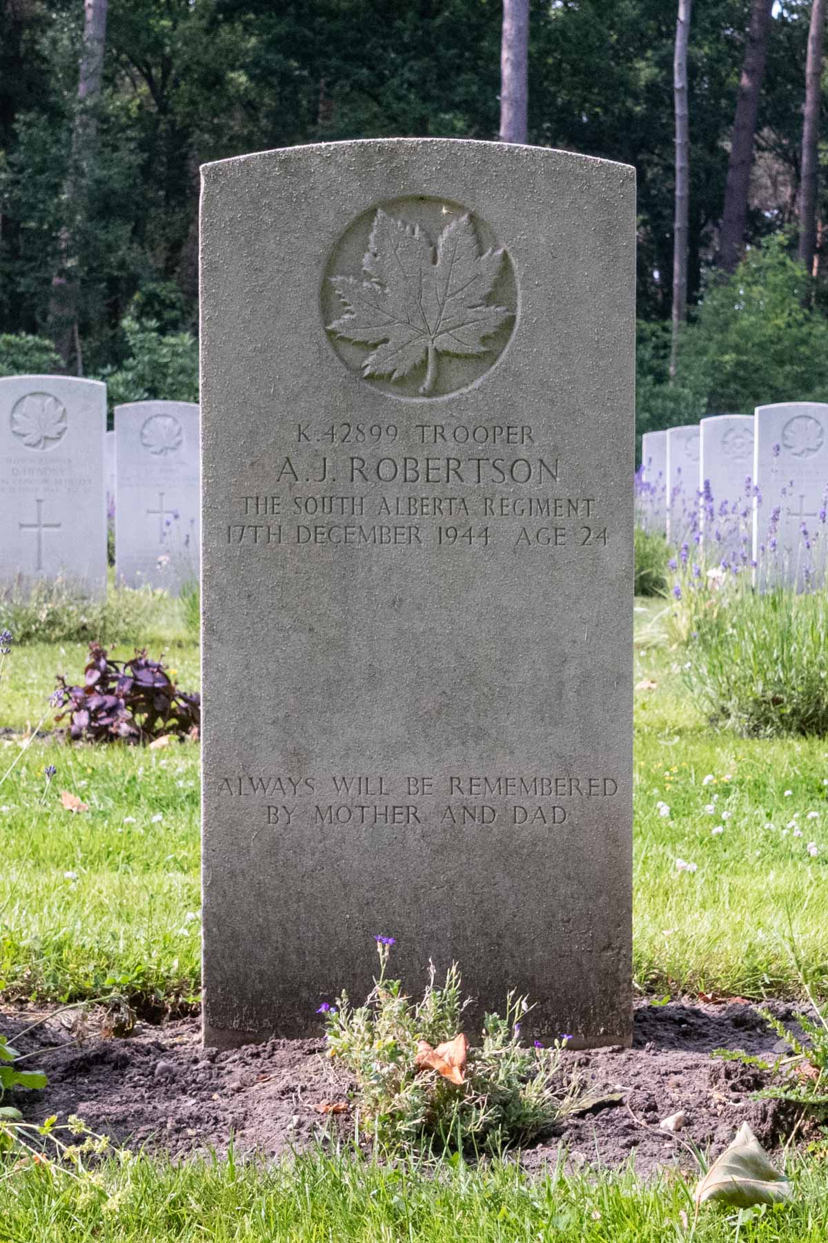 Date de décès (jj-mm-aaaa): 17-12-1944Âge au décès: 24 ansDernier cimetière: Canadian War CemeteryNuméro de tombe (plot, file, tombe): 08 B 06Rang: TrooperNuméro de service: K/42899