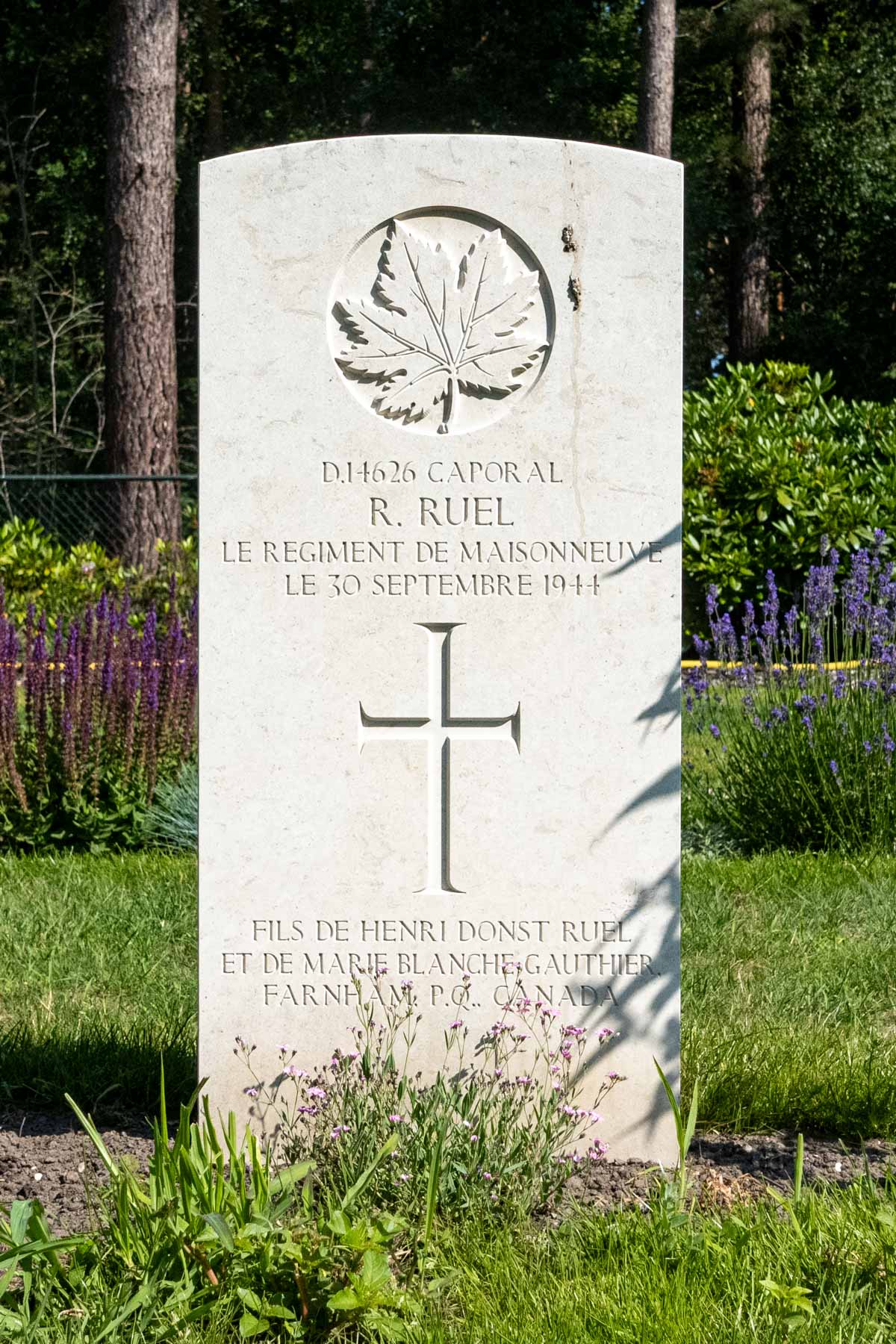Date de décès (jj-mm-aaaa): 30-09-1944Dernier cimetière: Canadian War CemeteryNuméro de tombe (plot, file, tombe): 09 F 04Rang: CorporalNuméro de service: D/14626