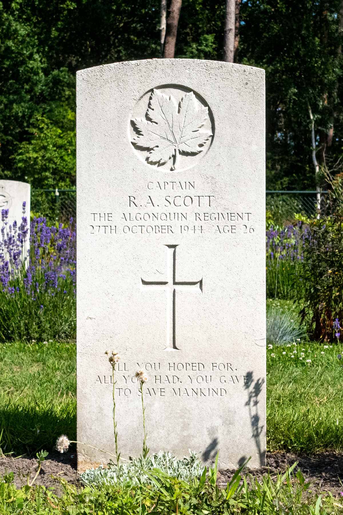 Date de décès (jj-mm-aaaa): 27-10-1944Âge au décès: 26 ansDernier cimetière: Canadian War CemeteryNuméro de tombe (plot, file, tombe): 08 F 11Rang: Captain