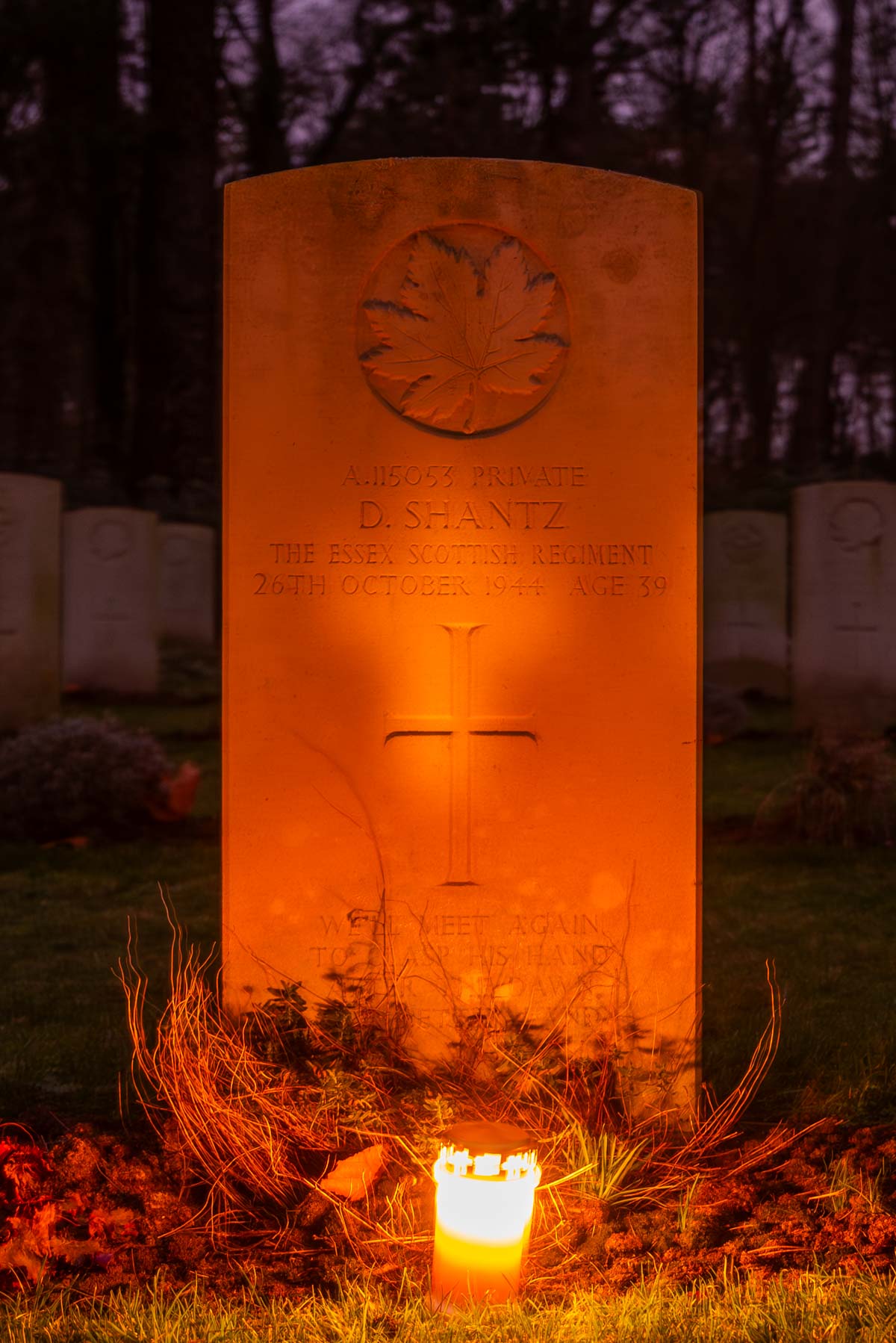Date de décès (jj-mm-aaaa): 26-10-1944Âge au décès: 39 ansDernier cimetière: Canadian War CemeteryNuméro de tombe (plot, file, tombe): 07 C 09Rang: PrivateNuméro de service: A/115053