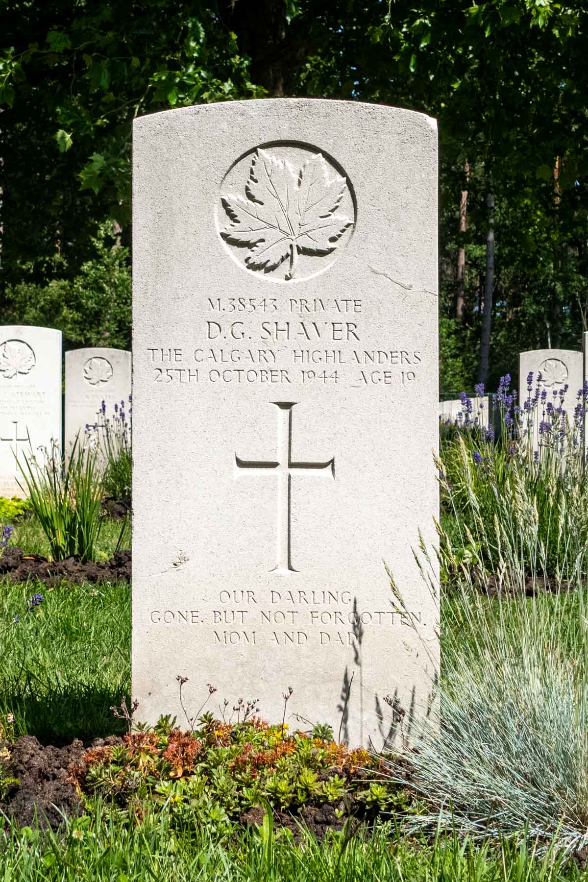 Date de décès (jj-mm-aaaa): 25-10-1944Âge au décès: 19 ansDernier cimetière: Canadian War CemeteryNuméro de tombe (plot, file, tombe): 02 E 07Rang: PrivateNuméro de service: M/38543
