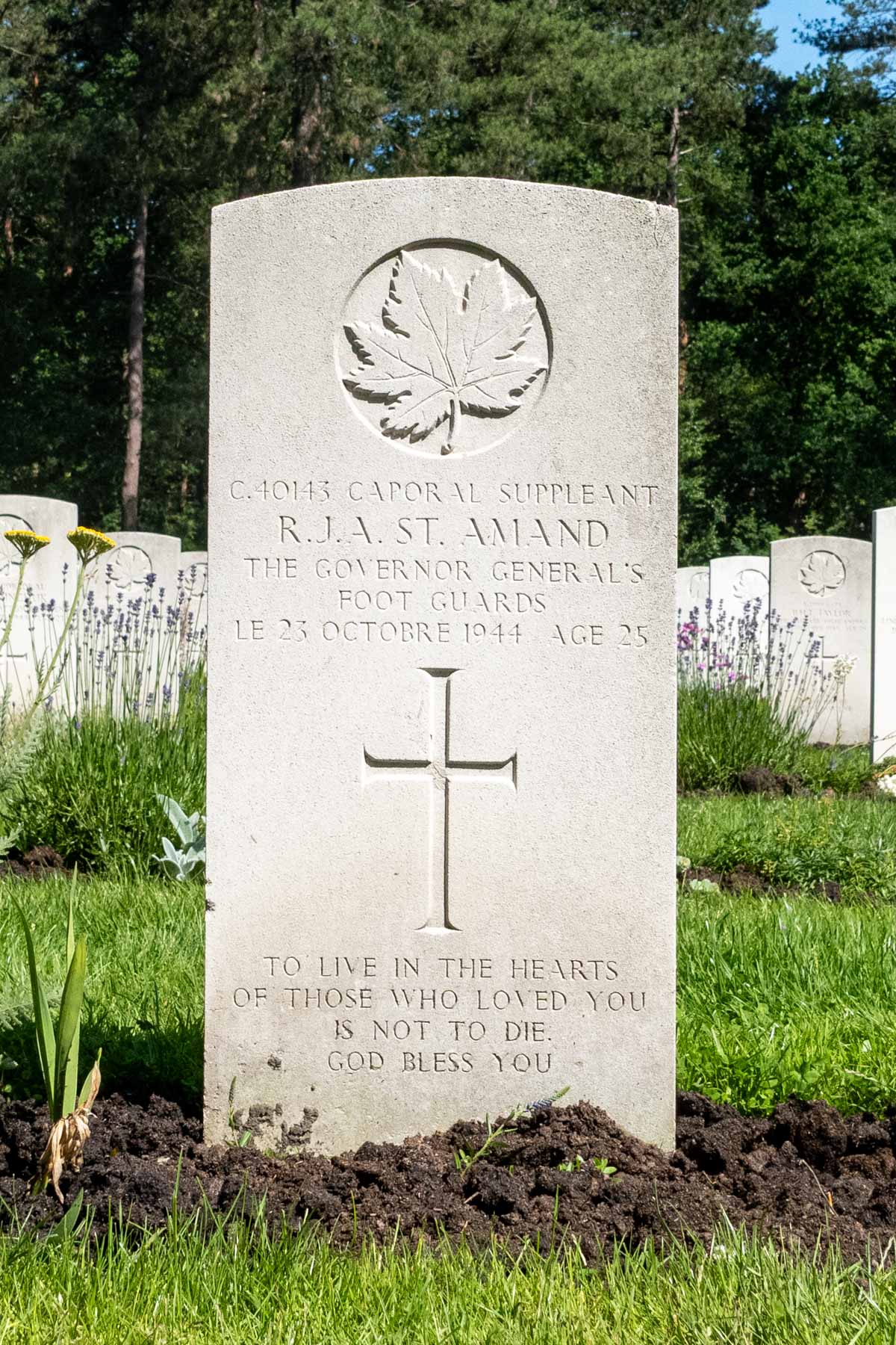 Date de décès (jj-mm-aaaa): 23-10-1944Âge au décès: 25 ansDernier cimetière: Canadian War CemeteryNuméro de tombe (plot, file, tombe): 01 C 10Rang: Lance CorporalNuméro de service: C/40143