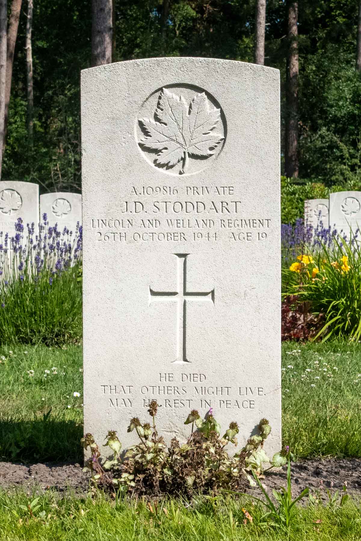 Date de décès (jj-mm-aaaa): 26-10-1944Âge au décès: 19 ansDernier cimetière: Canadian War CemeteryNuméro de tombe (plot, file, tombe): 09 C 04Rang: PrivateNuméro de service: A/109816