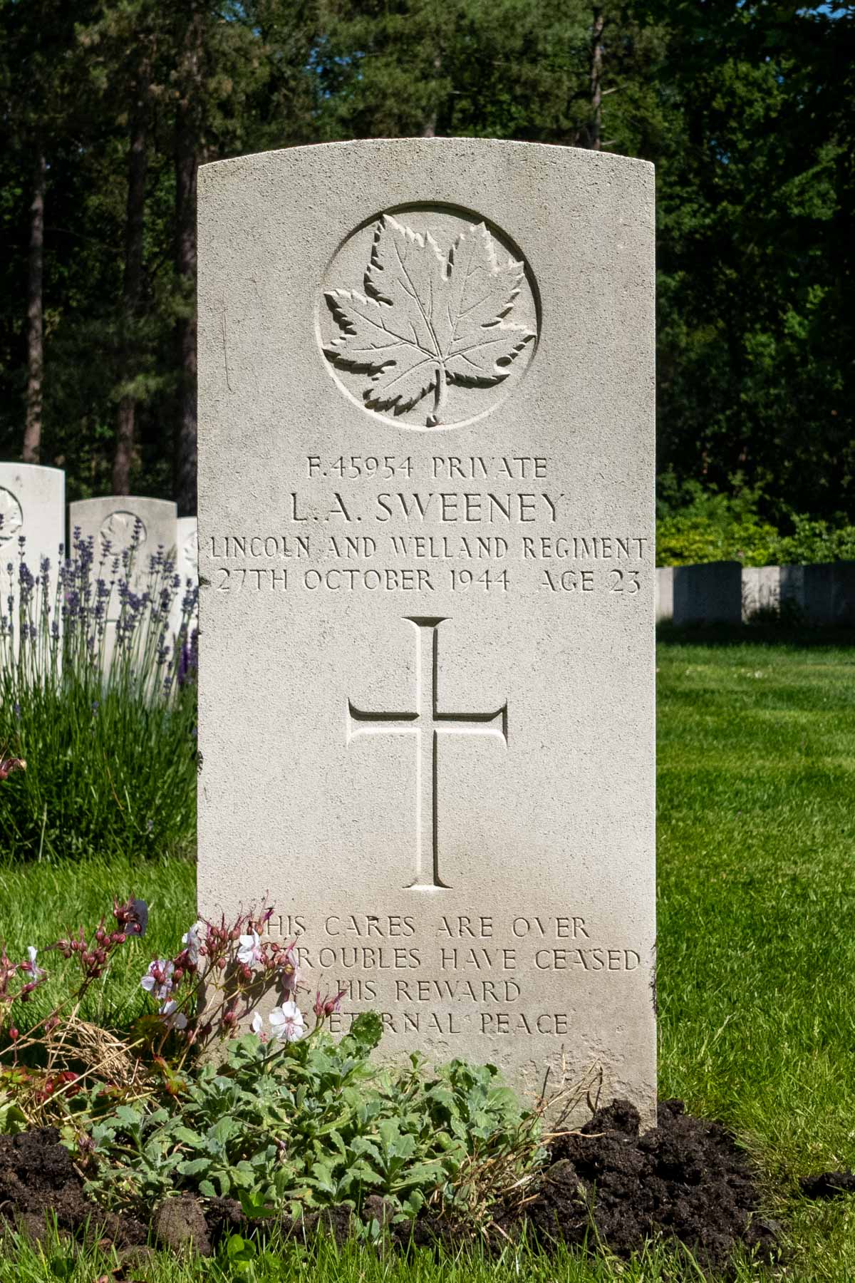Date de décès (jj-mm-aaaa): 27-10-1944Âge au décès: 23 ansDernier cimetière: Canadian War CemeteryNuméro de tombe (plot, file, tombe): 01 C 12Rang: PrivateNuméro de service: F/45954