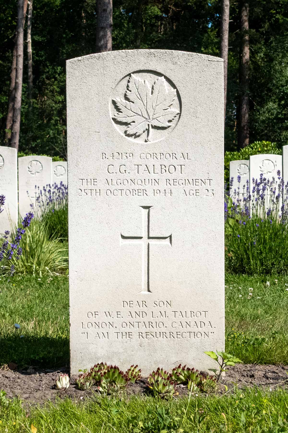 Date de décès (jj-mm-aaaa): 25-10-1944Âge au décès: 23 ansDernier cimetière: Canadian War CemeteryNuméro de tombe (plot, file, tombe): 09 C 03Rang: CorporalNuméro de service: B/42139