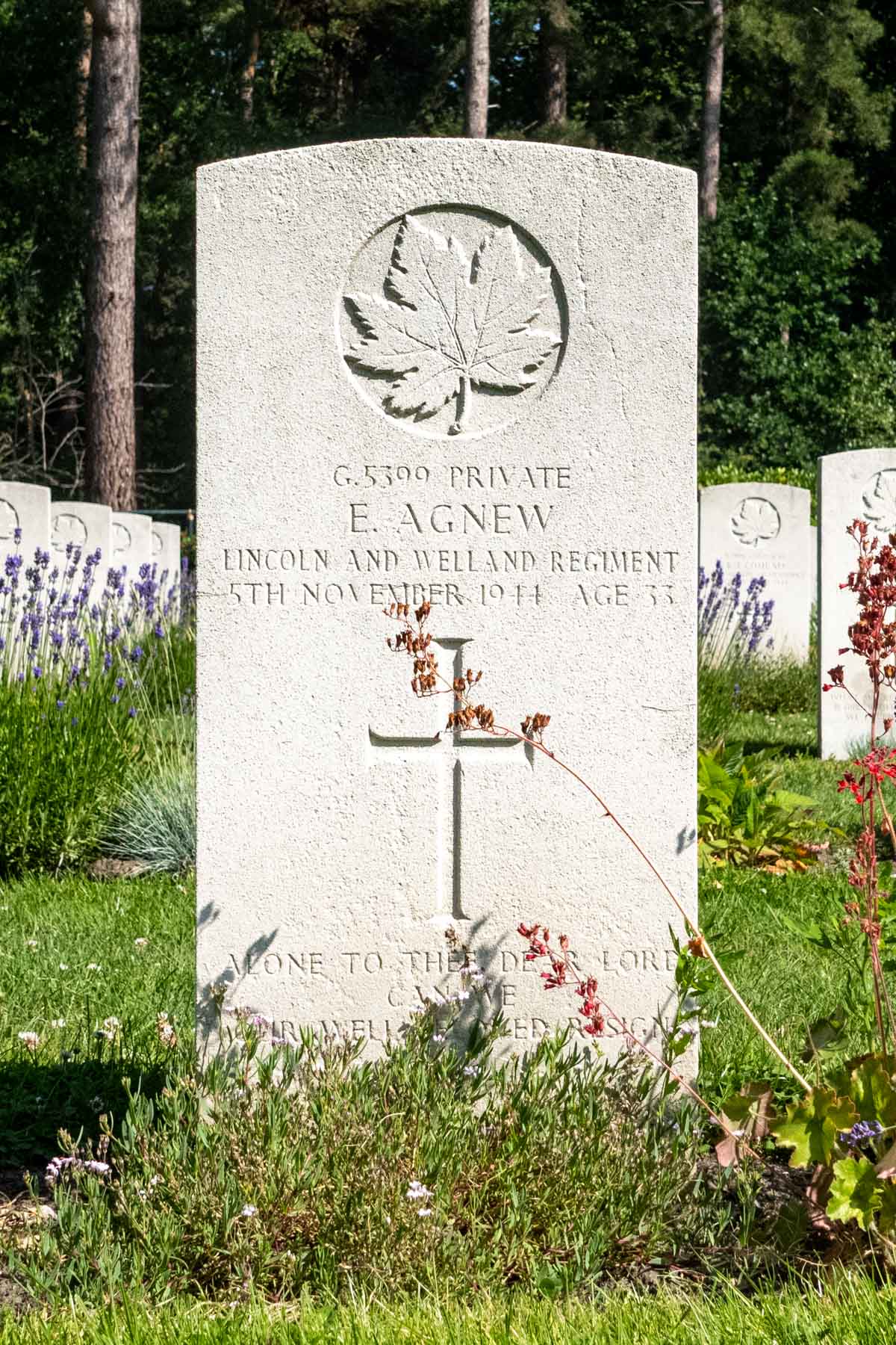 Overlijdensdatum (dd-mm-jjjj): 05-11-1944Leeftijd bij overlijden: 33 jaarDefinitieve begraafplaats: Canadian War CemeteryGrafnummer (plot, rij, graf): 09 A 04Rang: PrivateServicenummer: G/5399