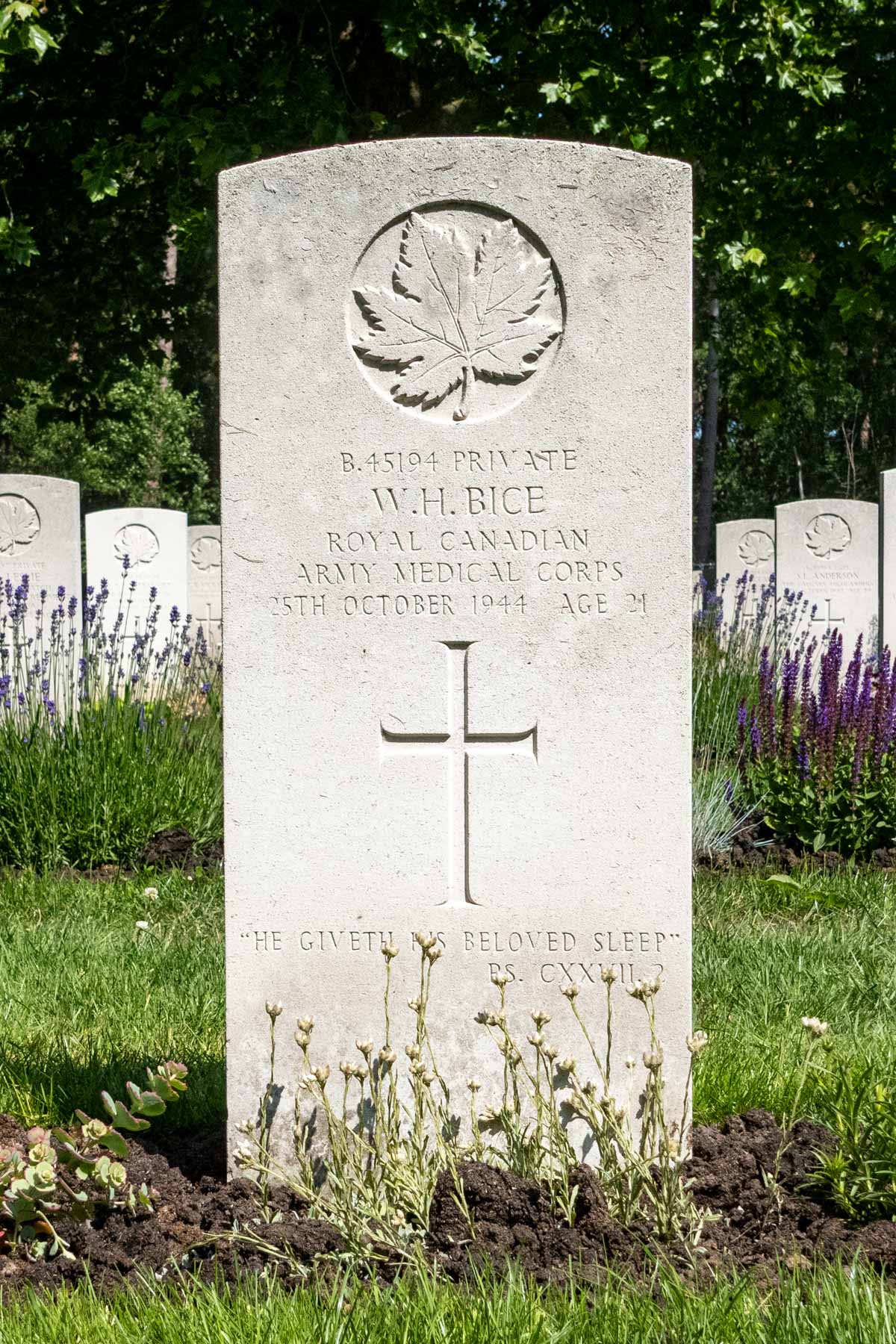 Ouders: Stewart Benny en Eliza Mabel BiceOverlijdensdatum (dd-mm-jjjj): 25-10-1944Leeftijd bij overlijden: 21 jaarReden van overlijden: Gedood tijdens gevecht. Granaatscherf in zijn hoofd.Vermoedelijke sterfplaats: Hoogerheide, op de weg naar Huijbergen.Tijdelijke begraafplaats: Op het schoolplein van een school in Hoogerheide.Definitieve begraafplaats: Canadian War CemeteryGrafnummer (plot, rij, graf): 02 D 07Rang: PrivateServicenummer: B/45194Land waarvoor gediend: Canada