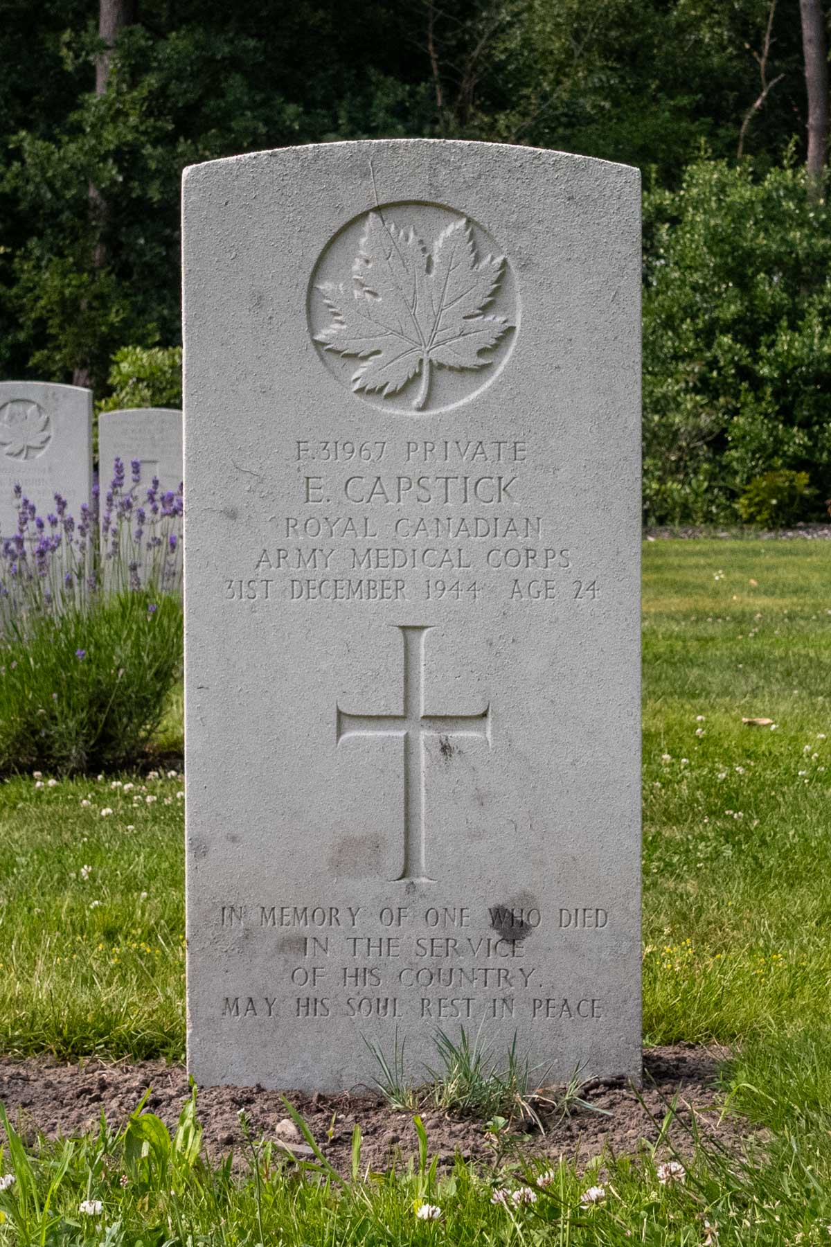 Overlijdensdatum (dd-mm-jjjj): 31-12-1944Leeftijd bij overlijden: 24 jaarDefinitieve begraafplaats: Canadian War CemeteryGrafnummer (plot, rij, graf): 10 C 12Rang: PrivateServicenummer: F/31967