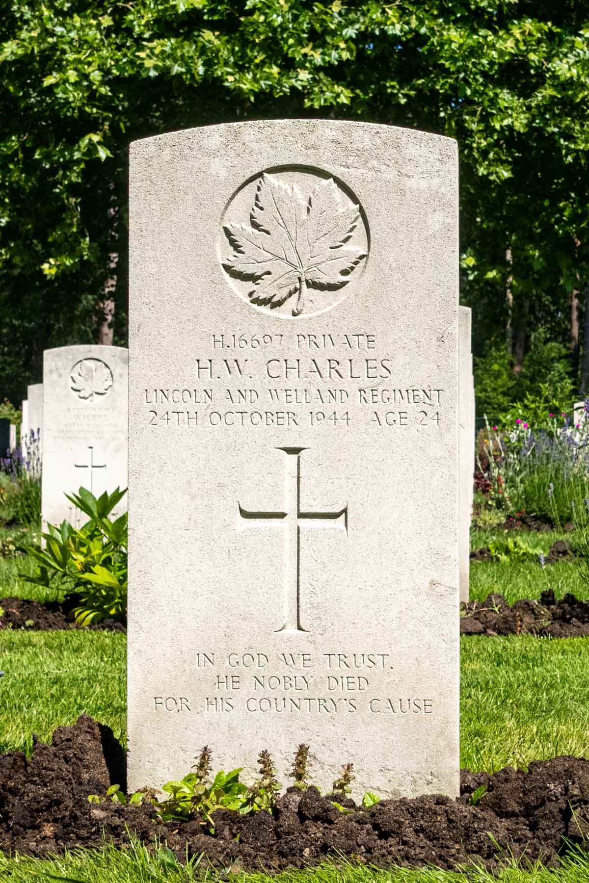 Overlijdensdatum (dd-mm-jjjj): 24-10-1944Leeftijd bij overlijden: 24 jaarDefinitieve begraafplaats: Canadian War CemeteryGrafnummer (plot, rij, graf): 02 B 08Rang: PrivateServicenummer: H/16697