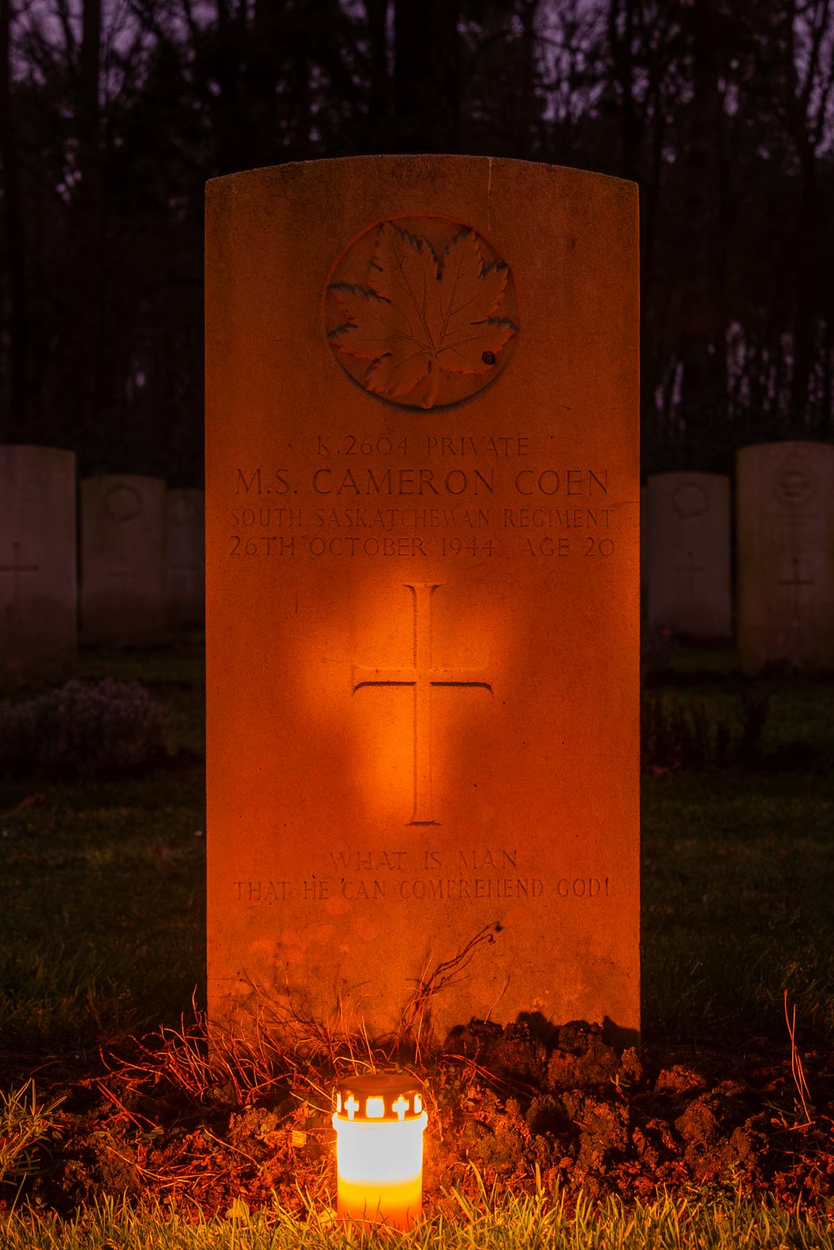 Overlijdensdatum (dd-mm-jjjj): 26-10-1944Leeftijd bij overlijden: 20 jaarDefinitieve begraafplaats: Canadian War CemeteryGrafnummer (plot, rij, graf): 07 C 07Rang: PrivateServicenummer: K/2604