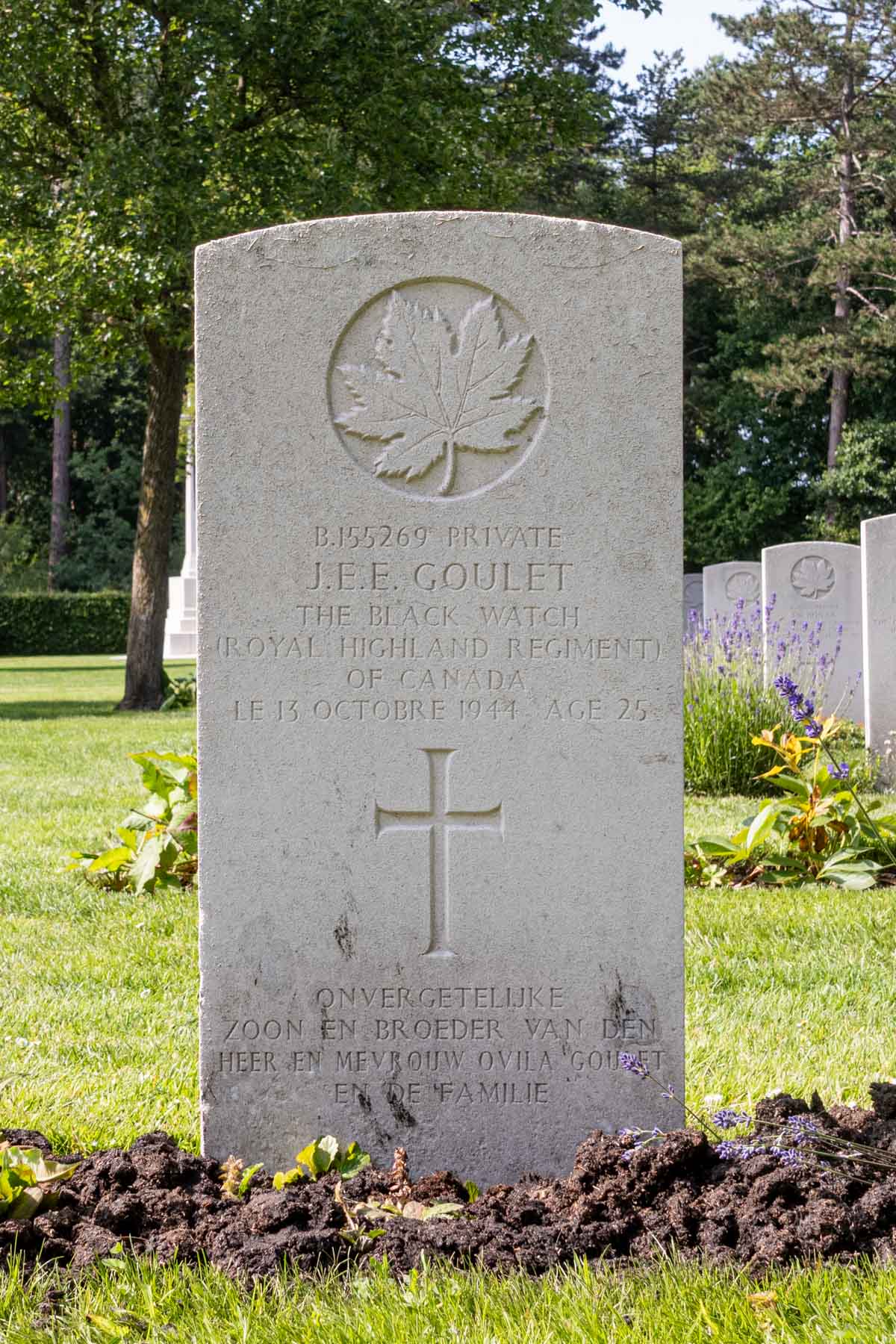 Overlijdensdatum (dd-mm-jjjj): 26-10-1944Leeftijd bij overlijden: 25 jaarDefinitieve begraafplaats: Canadian War CemeteryGrafnummer (plot, rij, graf): 04 A 01Rang: PrivateServicenummer: B/155269