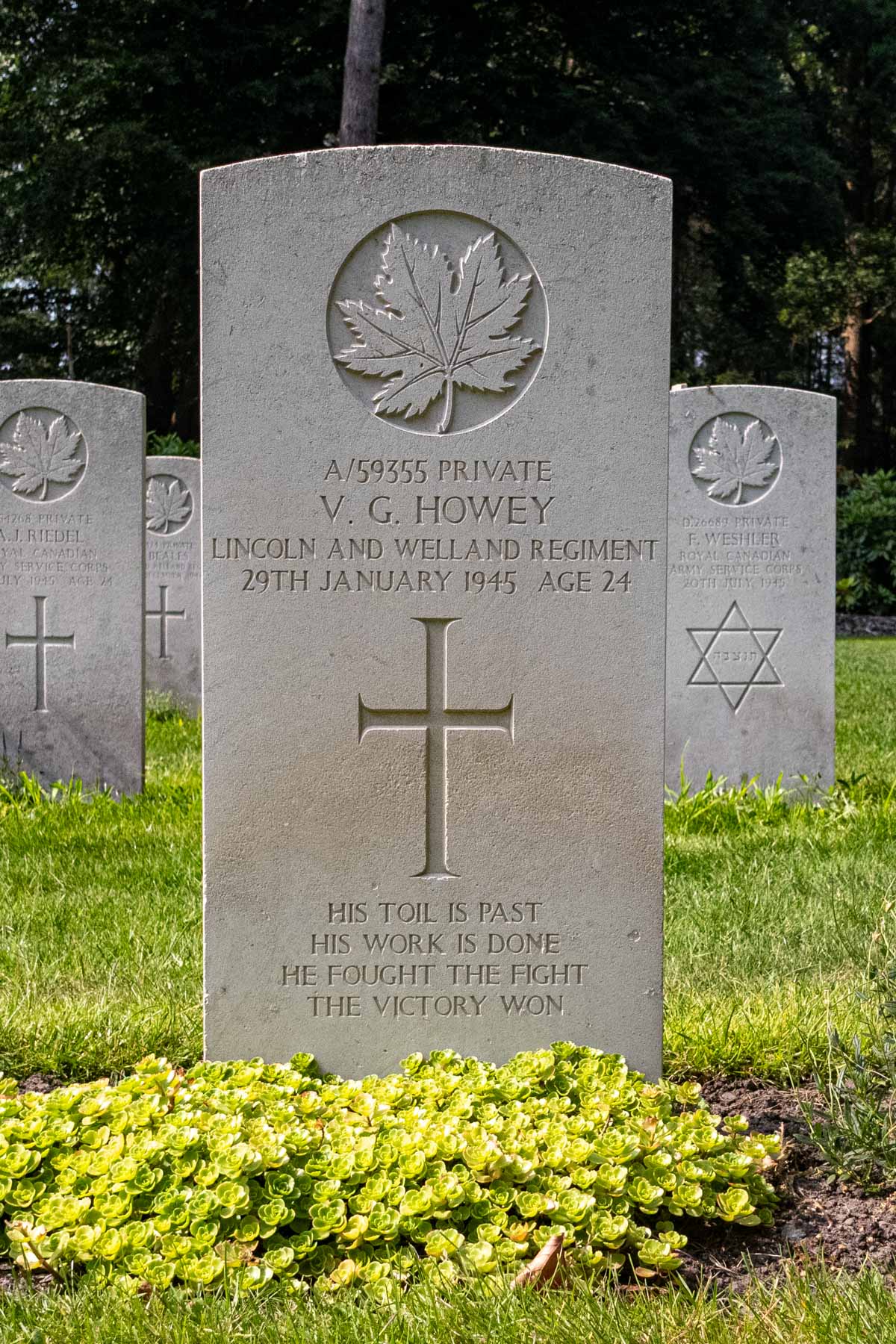 Overlijdensdatum (dd-mm-jjjj): 29-01-1945Leeftijd bij overlijden: 24 jaarDefinitieve begraafplaats: Canadian War CemeteryGrafnummer (plot, rij, graf): 12 D 11ARang: PrivateServicenummer: A/59355