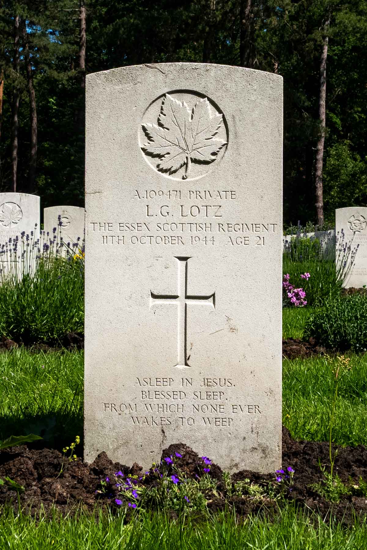 Overlijdensdatum (dd-mm-jjjj): 11-10-1944Leeftijd bij overlijden: 21 jaarDefinitieve begraafplaats: Canadian War CemeteryGrafnummer (plot, rij, graf): 01 E 06Rang: PrivateServicenummer: A/103471