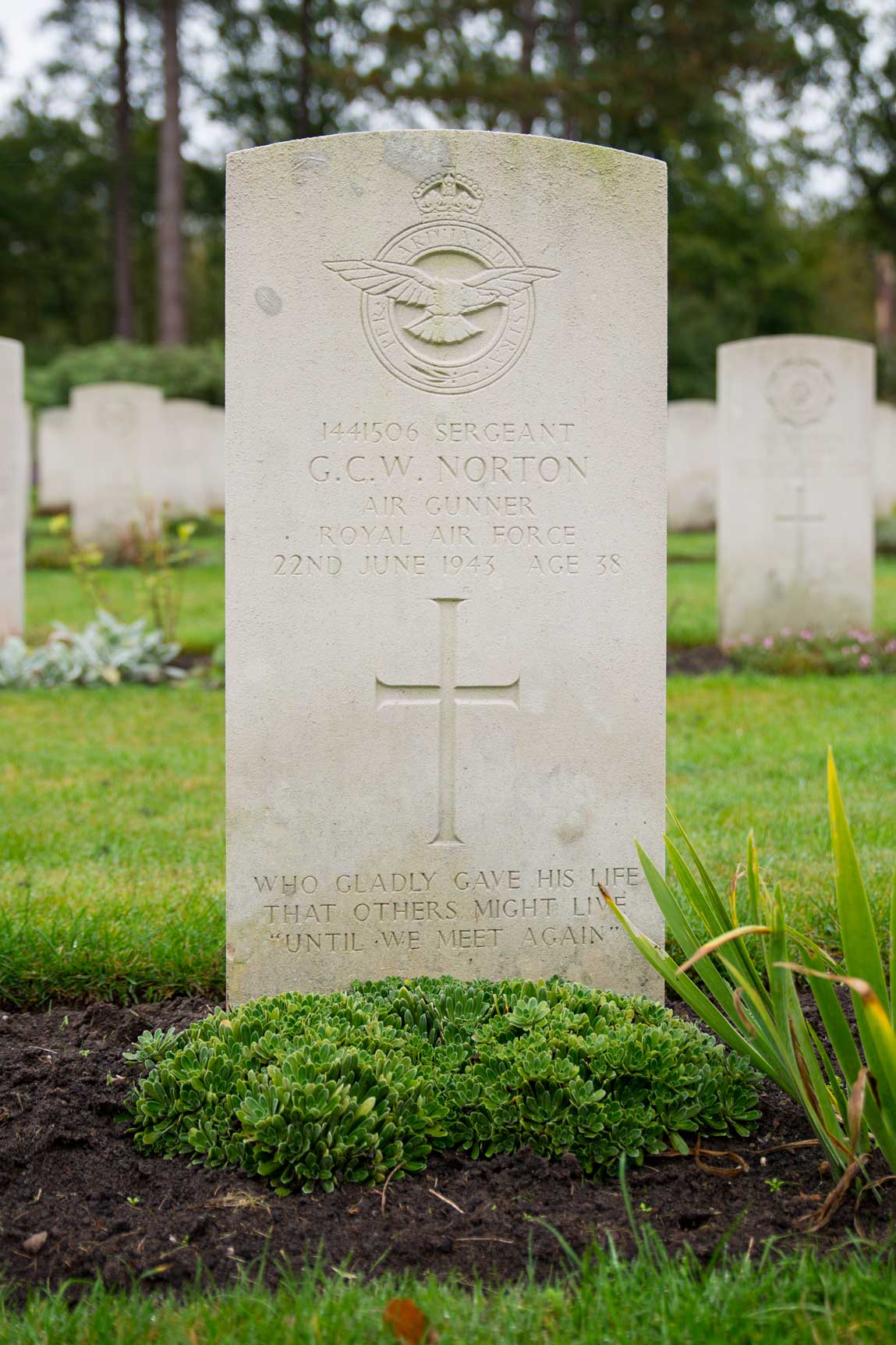 Echtgenote: Kitty Norton, uit Southend-on-Sea, Essex.Ouders: George en Hannah NortonOverlijdensdatum (dd-mm-jjjj): 22-06-1943Leeftijd bij overlijden: 38 jaarDefinitieve begraafplaats: War CemeteryGrafnummer (plot, rij, graf): 24 B 03-04BRang: SergeantServicenummer: 1441506Land waarvoor gediend: Verenigd Koninkrijk
